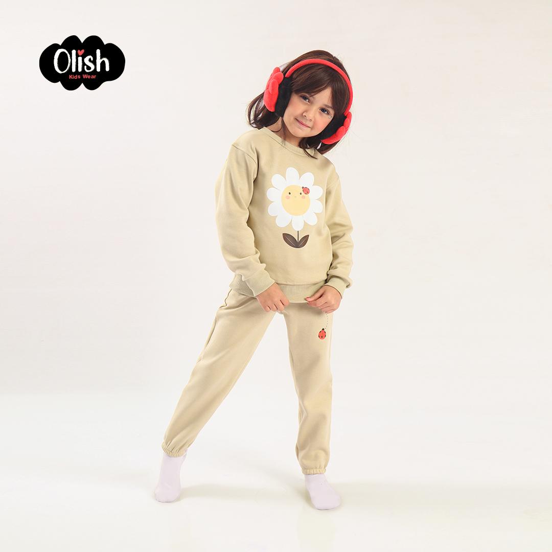 Soft Fleece Sweatshirt & Joggers Set with Cheerful Flower Print – Ideal Warmth for Playtime!...